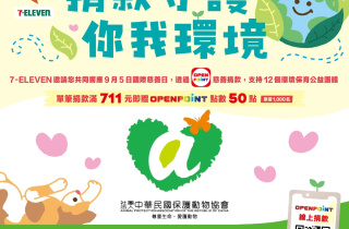 即日起至9/15,在7-ELEVEN OPENPOINT APP上捐款