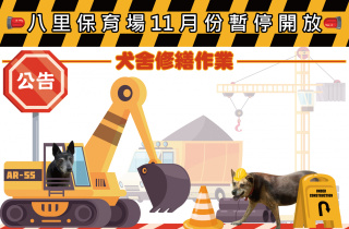 因犬舍修繕作業進行中,11月份八里保育場將暫不對外開放。