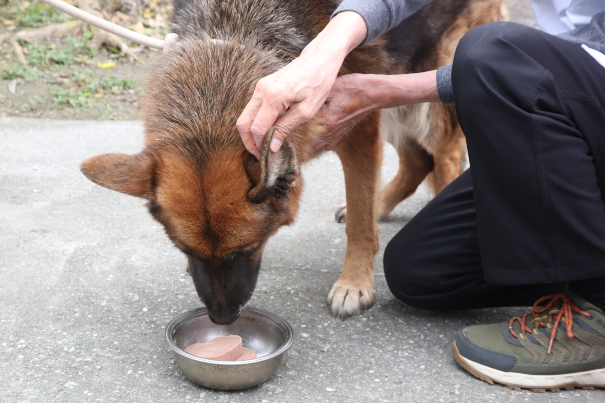 走進收容場所,一隻隻狗狗望向門口,有的搖尾巴,有的靜靜凝視,似乎仍在等待熟悉的主人出現。牠們的家或許早已不在,主人也可能永遠無法回來,但那份忠誠與等待,仍寫在牠們清澈的眼神裡。看著志工們每天細心餵食、清理與陪伴,這份無私的守護,也讓人深深動容。