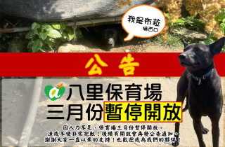 在人手緊繃的現在,為了保育場的毛孩們都能得到最好的照護,我們決定三月繼續暫停開放。