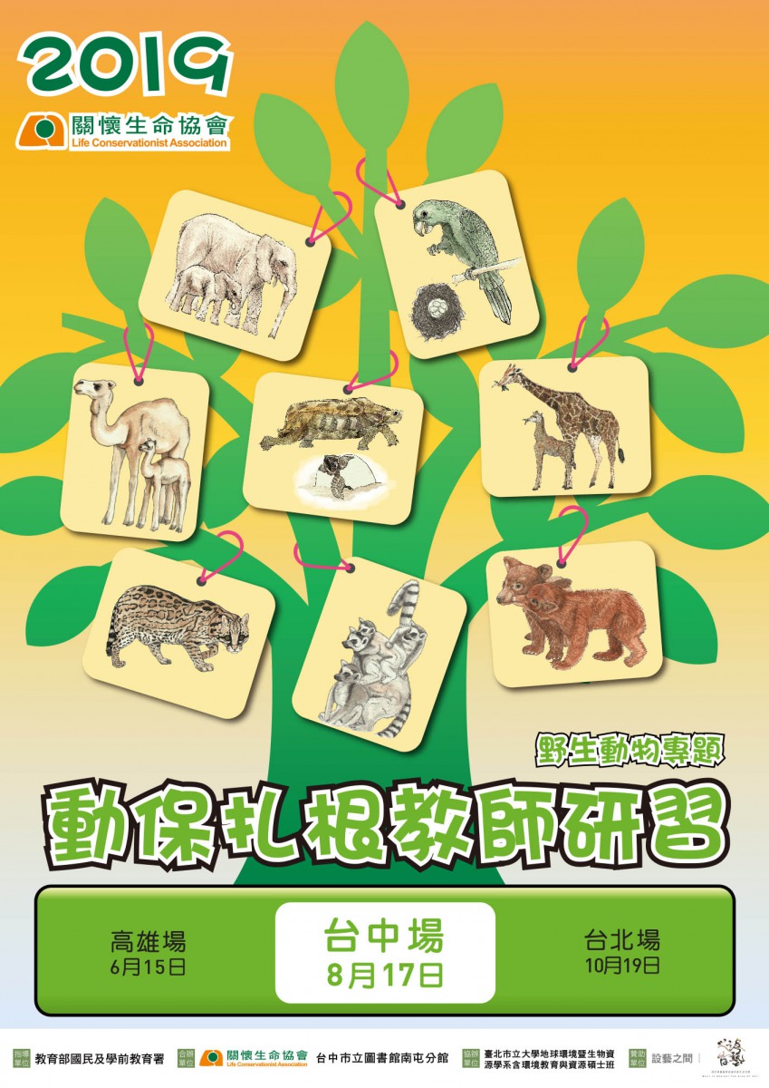 為了落實校園中的動保教育,關懷生命協會與臺中市立圖書館南屯分館合作,於8月17日舉辦「2019動保扎根教師研習」野生動物專題研習課程,並由財團法人全聯慶祥慈善事業基金會、財團法人全聯佩樺圓夢社會福利基金會熱情贊助,讓孩子的動保教育從小扎根。