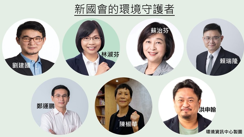 少數國民黨立委中願意聲援大潭藻礁議題,反對觀塘工業港開發的陳學聖;任內相當關心電業、空污與能源轉型,並承諾願推動礦業法修法的洪慈庸;深耕花蓮維護原民權益與好山好水的蕭美琴均連任失利,新國會等於少了三個守護環境價值的席次。