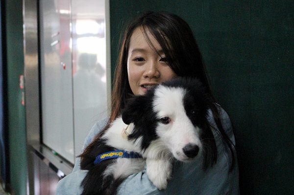 新聞中提到、在吳興街沒有受到飼主良好照顧的狗狗就是邊境牧羊犬Momo,當時飼主疏於照顧,Momo感染毛囊蟲,身上、臉上都是抓癢造成的傷口。後來動保員何祈龍與飼主溝通,請飼主把狗狗交給動保處,Momo才遇到現在的主人(圖)。Momo新主人黃小姐才大三,卻願意花錢、花時間治療Momo的皮膚病,目前8、9個月大的Momo每個月仍須回院治療。