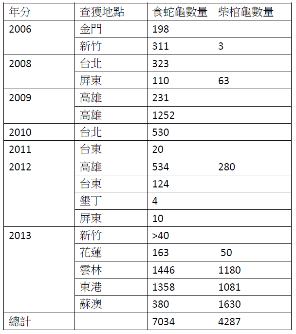 從走私查獲數量來看,食蛇龜查獲數量從2006年的509隻到去年的3387隻,數量翻了6倍之多,而柴棺龜也從零星走私案,演變成1起1千隻起跳。食蛇龜前幾個月遭竊的墾丁國家公園管理處表示,走私數量爆增應與中國民眾的需求有關。中國民眾篤信「吃龜補身」,近年轉向台灣、日本收購,食蛇龜每斤可喊到5、6000元。