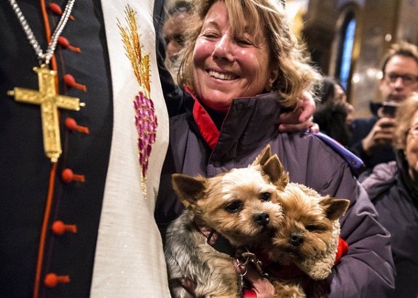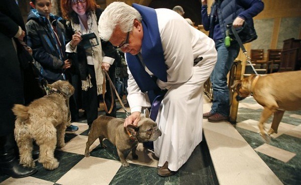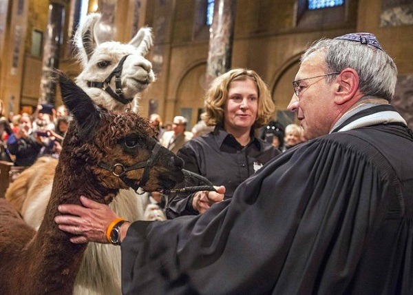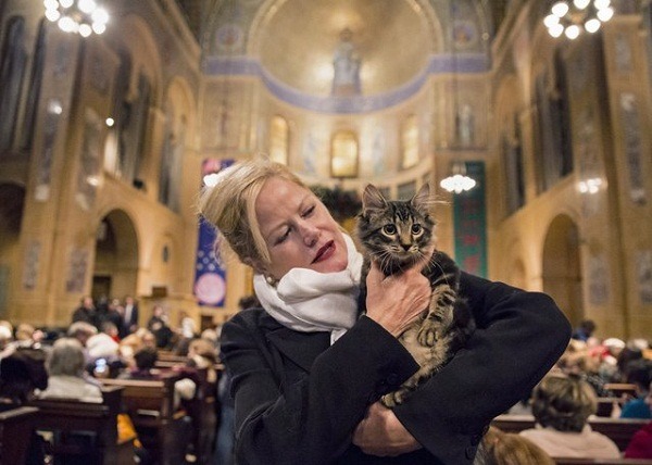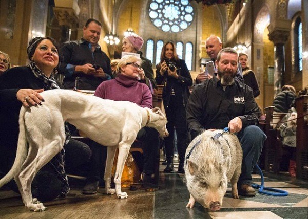 位於紐約曼哈頓的基督教聯合會( Christ Church United Methodist),在12月7日 進行了為動物祈福的典禮( Blessing of the Animals),這已是第6年舉行,除了許多貓狗飼主帶著寵物盛裝出席外,也有農場動物進入教堂接受教士的祝福,而紐約動物警察隊的5隻警犬和幾匹馬,當然也不會錯過這個獲得庇祐的機會。