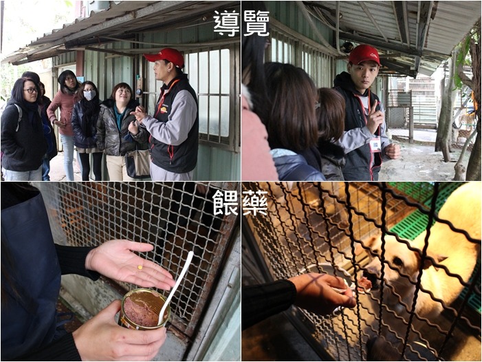 至於餵食、餵藥則是分為上、下午兩次。丸子解釋,每個犬舍都有各自負責的工作人員,而餵食時間則是依負責人調整;餵藥的話,因為保育場有3分之1以上都是老犬,每天都需要吃慢性病的藥,或是保健藥品,會拌在罐頭或藥水內餵食。
