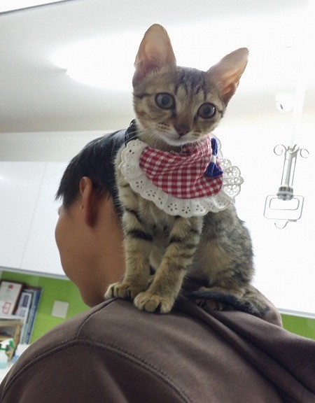 領養你的時間是在去年的十月中旬,你們是一窩被媽媽遺棄的貓崽子,領養你的原因或許是緣分吧,當初一群廠內員工在挑誰要領哪隻毛孩子回去養,我一隻一隻的抱起來看,只有你很安靜的張著眼睛看著我,不吵不鬧很安靜的蜷曲在我手裡,在那個時候我就想應該就是你了。