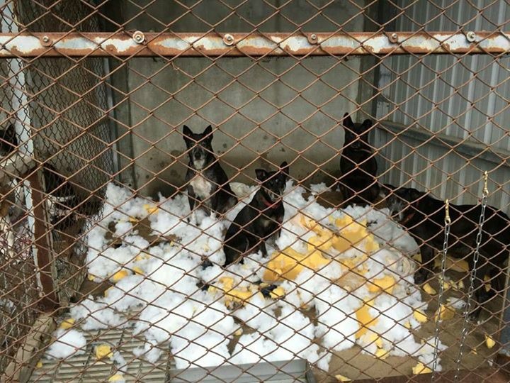 因為是學生志工,沒有甚麼經費,平時狗狗們都是吃飼料為主,最近要過年了,也終於到了狗狗們集體加菜的時候啦!過年都是家家戶戶大掃除以及吃年夜飯的大日 子,狗狗也是我們的家人,當然不能有差別待遇啦~每年寒假,我們會舉辦一次狗舍大掃除以及歡喜加菜活動,除了照常平日的清掃之外,還會使用噴槍消毒環境, 把狗狗們咬壞的木頭,玩壞玩髒的衣服都通通換新,並且給一隻狗狗一罐罐頭!讓過年不只是人過得開心,我們的毛小孩也一樣能吃得開開心心~