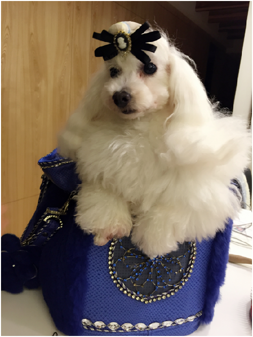 - 專用提袋:外出旅途中,遇到不方便讓她走路的地方,可以裝進提袋內,有著她自己熟悉味道的提袋也可以減低對陌生環境的不安全感。