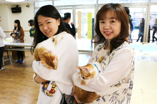 除了狗和鳥外,學生家長夏小姐更是推著家中的兩隻貓咪,陪女兒一起來參加寵物日,這兩隻橘白色的貓咪是分別叫做「Bone」、「Mini」的1歲大兄妹,當時是兒子領養回來的,因為送養人說貓兄妹一出生就相依為命,所以希望能一起領養。原本兩隻貓住在兒子宿舍,後來夏小姐則把貓接回家養。雖然這是他們家第一次養寵物,不過看著Bone和Mini幸福的模樣,想必是備受疼愛。