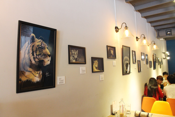 狹窄的咖啡廳長廊,壁面上是一幅幅野生動物的肖像,好奇趨前一看,牠們的表情不是雄赳赳氣昂昂、也不是充滿野性,而是透露了茫然。這一系列共15幅的作品,是畫家林北親自造訪屏東保育類野生動物收容中心後,所策劃的〈無法承獸〉公益微畫展。