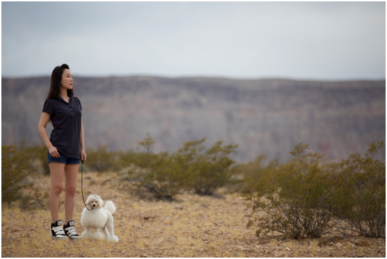 在為期3天的世界比賽中,還有一位也是來自於台灣的小女孩Vivi~一個未滿一歲半的毛孩,我很幸運得到我的老師林裕雄先生的割愛,她是坐車十分鐘就會暈吐的女孩,為了幫助我的比賽長途跋涉來到一萬多公里外的美國!在期間她吐了好幾次,醫生開的暈車藥並末完全減輕她的辛苦,同時她也深受時差之苦和沙漠型乾燥炎熱氣候的影響⋯⋯但是她在正式比賽時的一個半小時中,展現了超高的配合力!