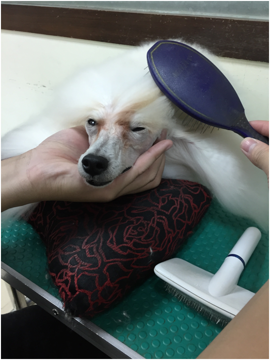 皮膚狀態也是觀察毛小孩是否老化的重點之一,通常過了6歲以後的毛小孩,因為新陳代謝變慢的原因,毛髮會日漸稀疏,皮膚開始鬆弛,膚質會比年輕時更容易出油,體味也會變重,想要延緩這些老化情況產生,就要在毛小孩年輕時就養成定期梳理毛髮,用修剪的方式保護毛孩珍貴的毛囊,用電剪剔光的方式對於熟齡毛孩是加速破壞皮膚毛髮結構,毛髮生會變得不均,也容易開始產生皮膚問題!