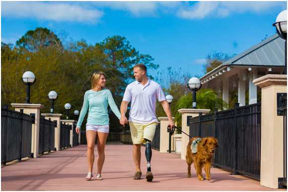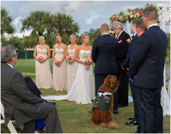 美國陸軍退伍軍人賈斯汀·蘭斯夫德(Justin Lansford),10月5日與卡絡珥·巴爾梅(Carol Balmes)在羅里達州拉哥市(Largo)舉行婚禮,伴郎是他的服務犬加貝(Gabe)。這隻黃金獵犬,從2012年蘭斯夫德在阿富汗因IED爆炸失去左腿回家後,就一直陪在他身邊。