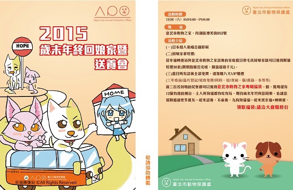內湖動物之家目前每月進入的動物約163隻、送養動物為120隻,認養率達79.3%,成績不差,為了酬謝領養家庭,並積極為還在收容所內的貓狗找到家,因而趁此時舉辦聚集人潮的活動,除了領養家庭只要帶毛孩「回娘家」,就有機會獲得價值1000元以上的好禮之外,一般民眾也可以到園遊會場採購各種商品,免費試吃試用,及獲得主辦單位特別準備的福袋,限量300份哦。