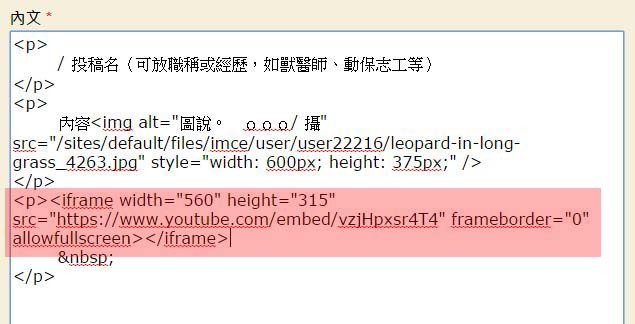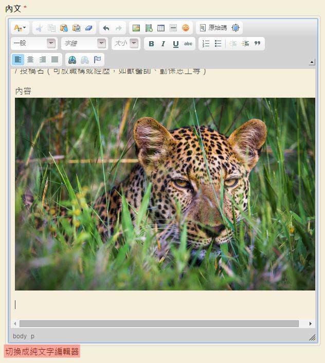 若要更改首圖可點「移除」並重複上一個步驟,內文請註明投稿者姓名(可用筆名、可放職稱),而內文圖片上傳較複雜,首先要先點選上圖中的上傳圖片圖像按鈕