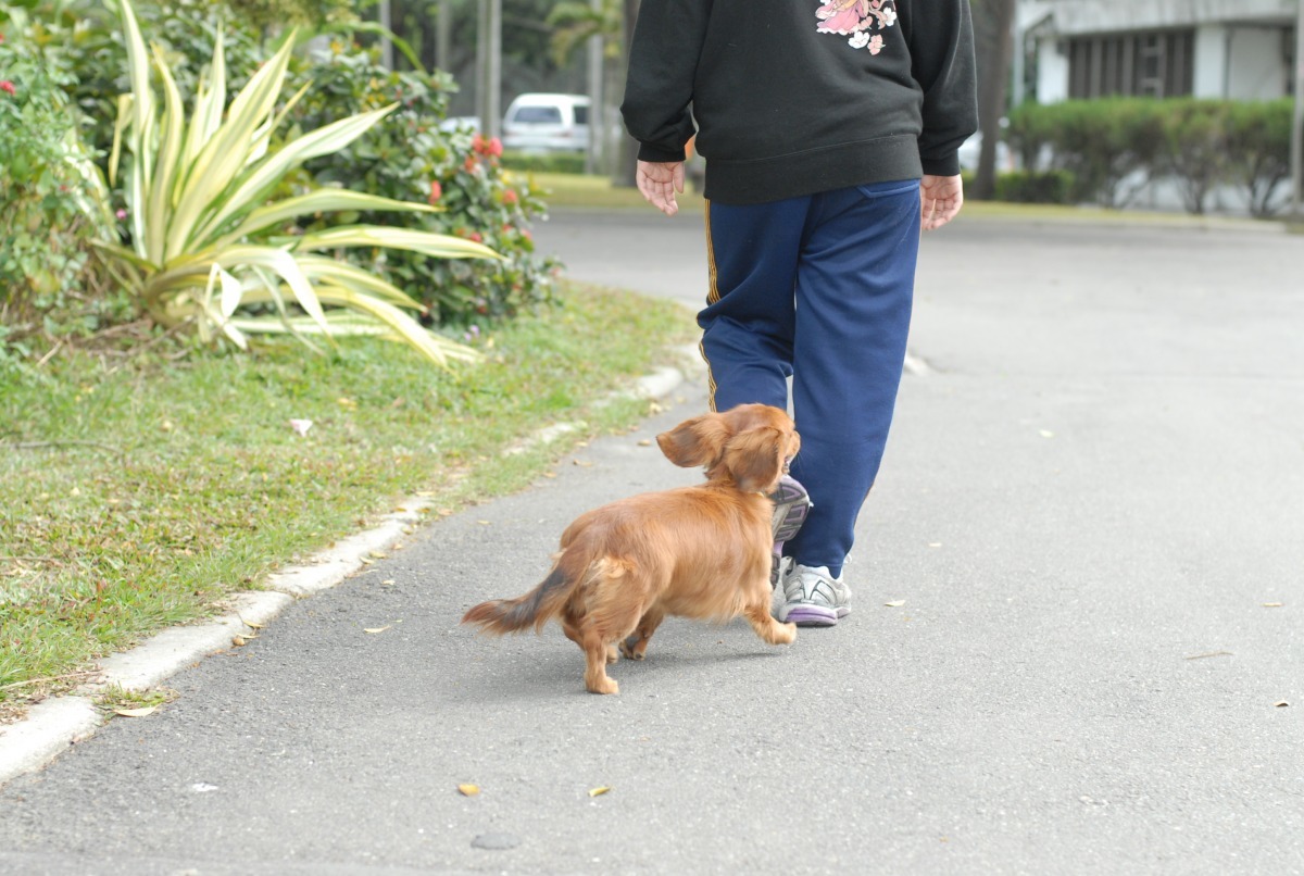 收養小肥仔時,工作上也發生一些變動,常忙到很晚,小肥仔在我回家後,常常就自己窩在角落,警戒地盯著我看,然後在我不注意的時候,無意識地睡著,一人一狗就在這樣緊繃的氣氛下持續了好幾天。直到有天晚上我開著小燈,窩在地板上的小茶几繼續工作,看到每天被關在家的小肥仔又窩在角落哀傷地睡去,實在覺得就算是人跟小動物,也總不好就這樣一直僵下去,就把有點重的小肥仔抱起來放在腳上,拍拍她的背,抬頭繼續工作,小肥仔就在懷中安靜地睡了。