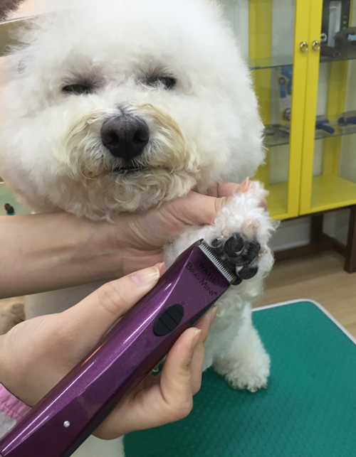 在洗吹剪的順序上可以隨毛孩調整,例如毛孩要進行美容修剪,在洗澡前如果毛過長,可以先使用電剪剔除多餘毛髮,背部、腳底、生殖器附近的毛髮都可以先剔除,節省洗澡和吹乾的時間。