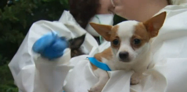 敲門之後沒有人應門,但他聽到裡面有狗的叫聲,就立即通知了愛護動物協會(SPCA)。經過愛護動物協會的人員調查,第二天就展開救援行動。在屋裡,救援人員發現了數百隻吉娃娃、約克夏、哈巴狗和混合品種的狗。
