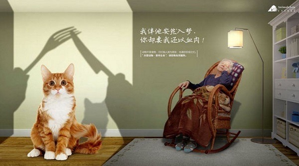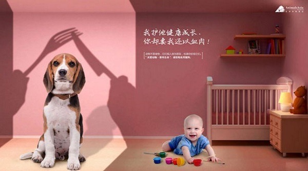 thedodo.com報導,亞洲動物基金向中國設計者徵集反對食用貓狗肉的海報,結果有400多份投稿,這些作品並不是呈現中國狗肉和貓肉行業的血腥,反而是以象徵手法去暗示這一行業的殘酷,讓人從心靈深處體悟狗肉行業的邪惡本質。