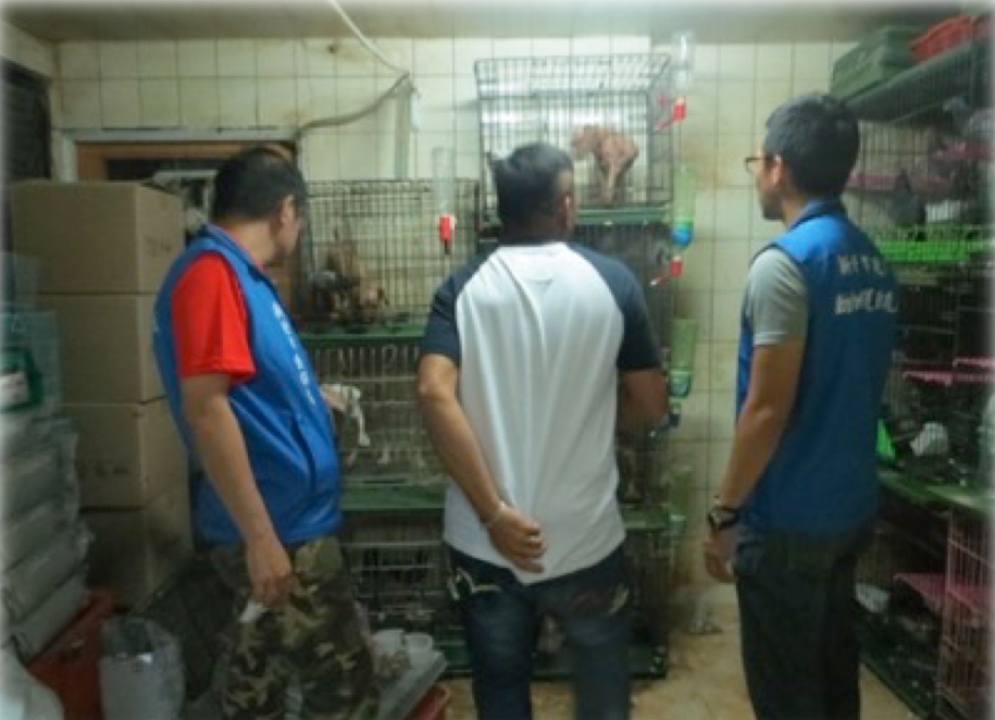 案例四:2015年8月12日,在板橋南雅夜市查獲非法販售犬隻。這個林姓非法業者,在我赴動保處就任前,就已經因為在夜市賣狗被逮過6次,每次都罰他5萬塊,總共罰了30萬,但即便強制執行也沒用,因為他沒有財產,所以根本不怕。這次在南雅夜市是第7次,當下我們就聯絡新北市動保警察,沒收他的「犯罪工具」,查扣他販賣的6隻小狗。結果林姓業者動手反抗,警察立即將他逮捕,最後一樣罰他5萬,小狗沒入,從此以後,一年多沒看到他再出現過。