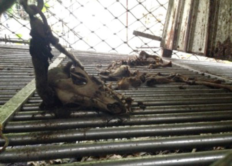 接到檢舉電話當天,我和同仁衝到林口查緝,發現現場有17具動物屍骸散落各處,空氣中充滿屍臭味。其中一具爛掉的屍體,大概有上萬隻的蛆在鑽動,連病理解剖都無法解剖;另外還有一隻大型犬,應該是哈士奇或狼犬,死後爛到剩下骨頭,鐵鍊及頸圈還吊在牠的脖子上。