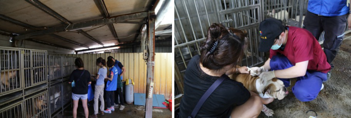 案例三:2016年7月13日,在板橋一砲雙響,經檢舉查獲寵物美容學苑及工作犬訓練學校非法繁殖共164隻品種犬。當我們抵達現場時,發現大部分都是法鬥,也有羅威納、獒犬,另外也抓到業者自行注射疫苗、非法販賣藥物。本案依動保法、獸醫師法及傳染病防治條例,裁處47萬元罰緩。
