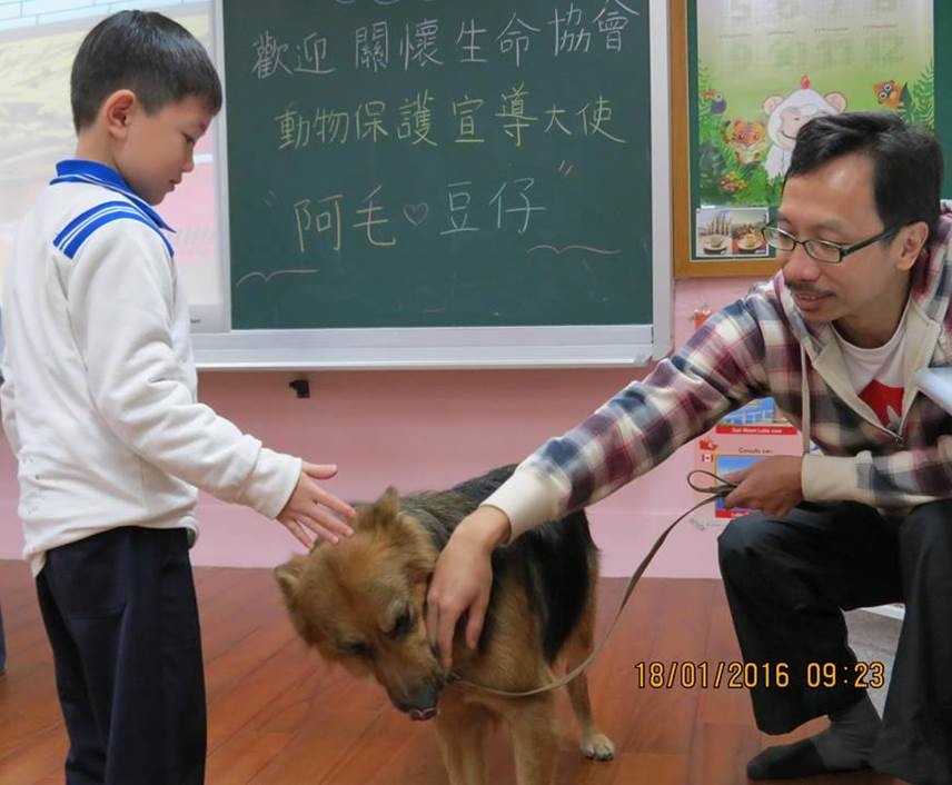 最後是關於野生動物與繪本結合的教學活動,其中一個故事是湯宜家領養的狗「阿毛跟豆仔」。阿毛還在收容所的時候,是一隻會貼著籠子期待人家摸牠的狗,她說:「同伴動物跟野生動物最大差別就在這裡,有的貓狗喜歡跟人互動,但野生動物不會,所以在人類的環境裡,我們必須養適合的動物。」