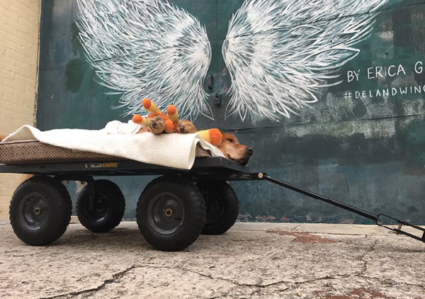 佛羅里達州的居民喬伊·麥克斯韋和他的妻子,8年前從一個會進行安樂死的收容所,搶救出黃金獵犬「小牛(Maverick)」,那時牠是隻被原飼主棄養的幼犬。現在的小牛,因為病痛加上年齡,雖然減損了行動力 ,卻不曾停下探索世界和認識朋友的步伐!