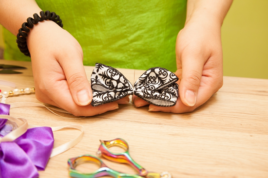 一般市面上所買到的毛小孩飾品,畢竟還是偏大眾化,無法滿足愛美的毛家長想為自己的毛小孩裝扮的需求,這位特別用心的美容師就會在閑暇之餘,親手縫製各式各樣不同花色尺寸的蝴蝶結裝飾,贈送給特別的毛家長。