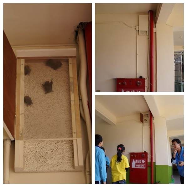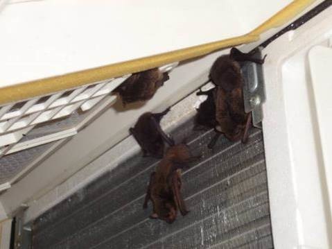 在台灣,除了野外的蝙蝠洞,在我們熟悉的環境裡,蝙蝠比較常見於校園,像圖片上方磚牆縫隙,就住了大概90隻。在都會區,則比較常見躲在住宅的冷氣機裡。「台灣是很有人情味的地方,有些人知道蝙蝠住在他家冷氣裡,就不開冷氣了。如果大家都這樣做的話,整個夏天應該可以省下可觀的電費。」