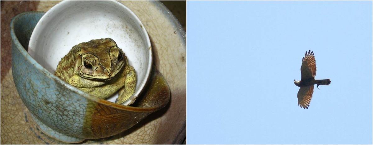 房子裡還有破舊的碗櫥,每回打開來就會遇見二房客黑眶蟾蜍。他說:「我們曾經把牠請出去,可是過一個禮拜牠又回來了。所以我們只好跟牠達成協議,上面的碗牠用,下面的碗我們用。」