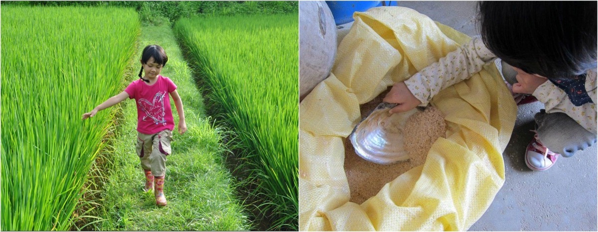 李璟泓的孩子很小就跟著他一起下田野。3歲多的時候,她畫下生命中第一次的拔蘿蔔。「我才發現,生命最需要的體驗是『觀察』──把發現的事情,最後通通都留在我們的身體裡。」於是他開始帶著孩子不斷「出野外」,阿伯農忙的時候,他們一家也會一起幫忙割稻、跟阿伯一起做草仔粿。小孩子很喜歡這樣的時光,經常開心地笑。