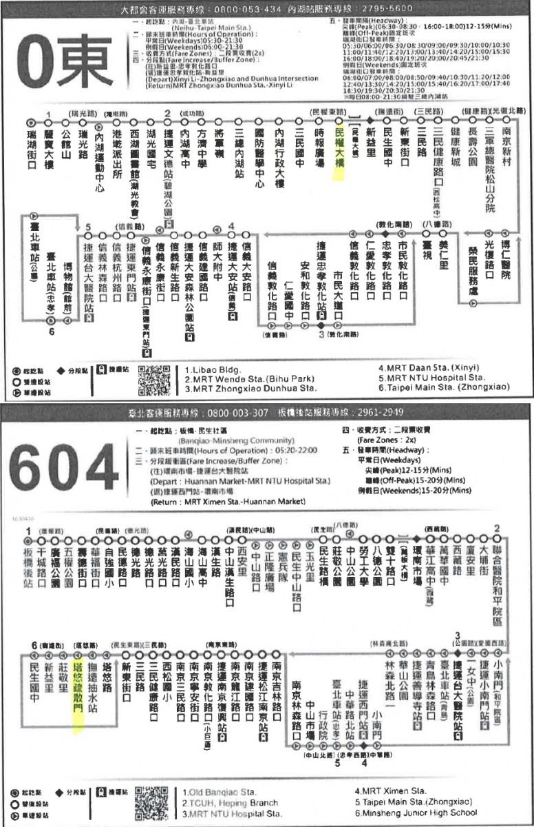 目前大都會客運0東路線公車,例假日將開放8點、10點半及下午4點20的班次讓乘客攜帶犬隻搭乘,台北客運604路線則是10點、下午1點、4點同樣開放3個班次。而乘車規定也特別註明不得帶病犬及發情母犬搭乘,此外也要做好寵登、狂犬病注射,並施以除蚤預防藥物以防交叉感染等等規定;需要特別注意的是,飼主一定要遵守替狗狗繫牽繩、穿尿布的規範,讓一般乘客也能安心搭乘,否則駕駛員可以拒載。