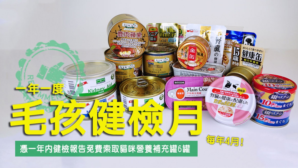 每年四月為腎貓協會毛孩健檢月,為鼓勵飼主定期帶寶貝健康檢查, 只要上傳一年內(106/4月-107/4月)期間之寵物健檢報告, 即可免費索取貓咪營養補充罐頭(多為老貓或護腎)6罐!