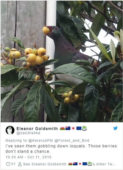 不過嘲弄歸嘲弄,這些愛吃的鴿子對紐西蘭的原生植物來說至關重要。因為牠們龐大的身軀,紐西蘭鴿子成為少數可以把整顆果實吞下肚的鳥兒,紐西蘭媒體stuff.co.nz形容到,牠們的能力相當於人類一口吞下整顆橘子,而且一次可以塞 12顆。