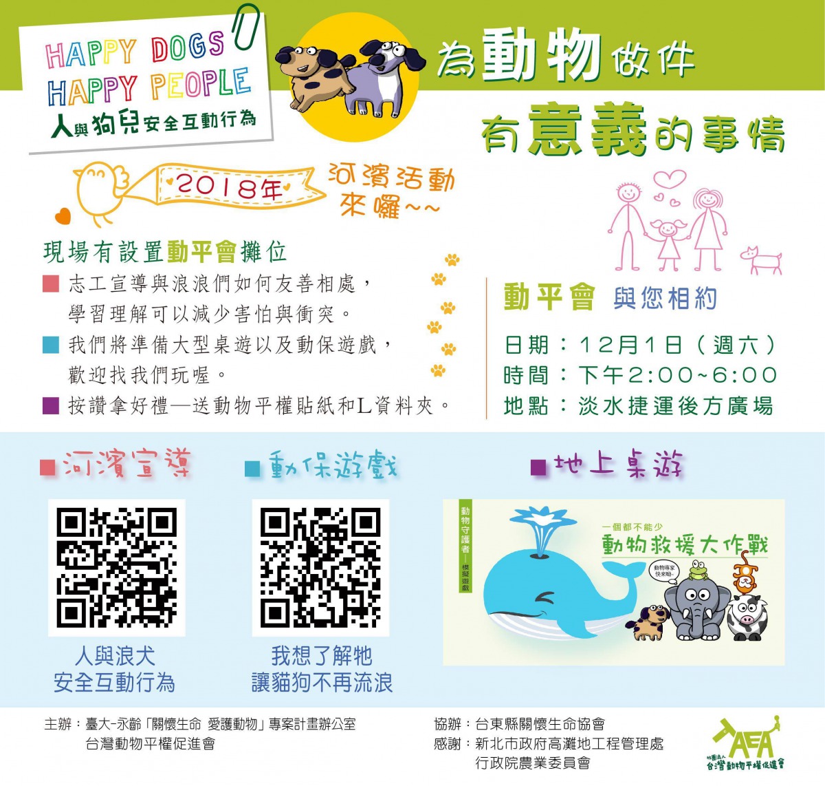 12/1相約在淡水~人與浪犬安全互動宣導,歡迎民眾參加、志工報名。